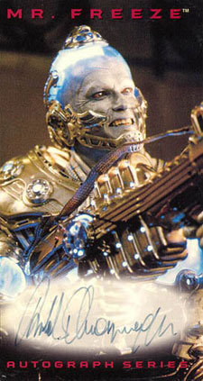 This wasn’t the action legend’s first signed card, though. The movie might be in the so-bad-it’s-good department, but the 1997 Fleer/SkyBox Batman and Robin Widevision Autographs list is one of the best ever. The former California governor is one of them, signing as Mr. Freeze.