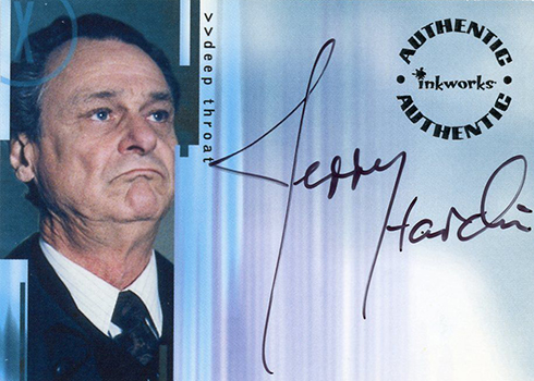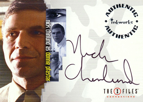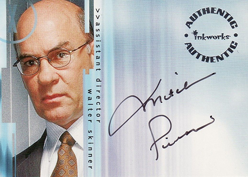 To trace the earliest X-Files autographs on trading cards one has to go back to when Topps held the license. Although they went big with the show early on with both cards and even comics, their only go with autographs came in 1998 X-Files: Fight the Future. And while such cards were new and novel at this point, the first group of signed cards were secondary names.