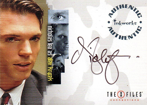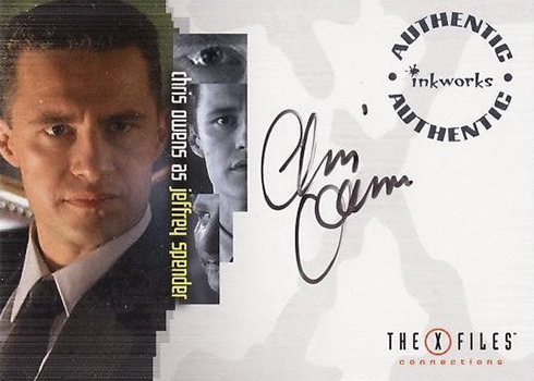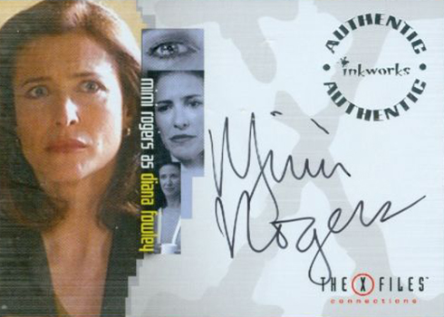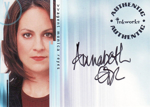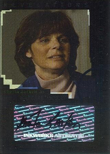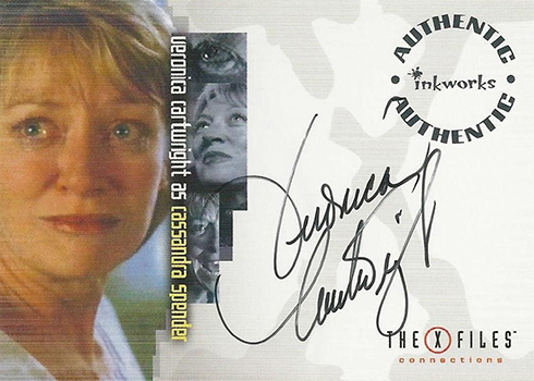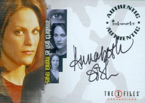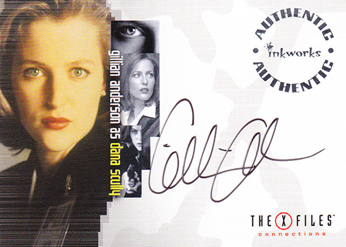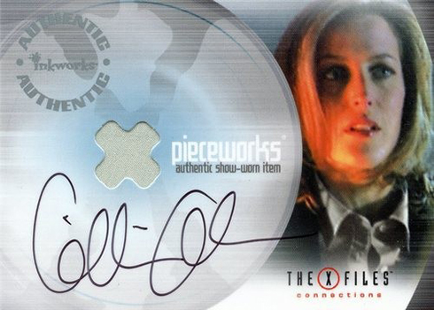 The character-based 2005 Inkworks X-Files Connections has the largest of all the autograph checklists. Most of the names are repeats from previous releases. It also has an Autographed Pieceworks card of Gillian Anderson with a small costume swatch.