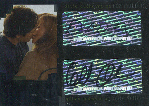 2008 Inkworks X-Files: I Want to Believe was one of the last from the card maker. On the one hand, the autographs are huge. Not only is there yet another from Anderson and Carter, but the product finally brought the hobby a David Duchovny autograph. Not only that, but a Duchovny-Anderson dual autograph was given as a dealer incentive. That said, many deem these cards to be inferior as the signatures come on bright foil stickers.